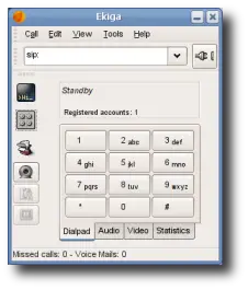 Ekiga (formely known as GnomeMeeting) is an open source VoIP and video conferencing application for GNOME. Ekiga uses both the H.323 and SIP protocols. It supports many audio and video codecs, and is interoperable with other SIP compliant software and also with Microsoft NetMeeting. Ubuntu contains Ekiga by default.